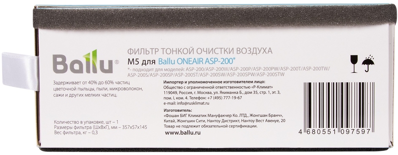 | Назначение и соответствие | для Ballu ONEAIR ASP-200 |