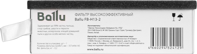 Высокоэффективный фильтр HEPA класса H13 для Ballu OneAir ASP-200* гарантированно обеспечивает чистых воздух в помещении.