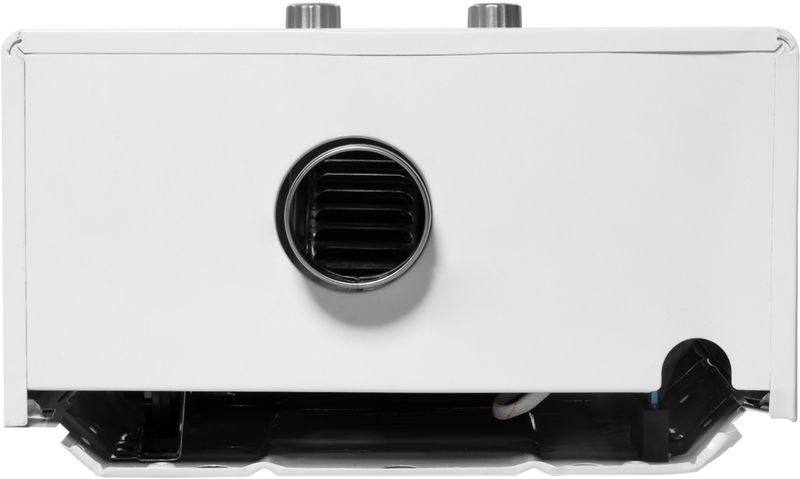 Классический белый глянцевый цвет и современный дизайн позволят прибору органично вписаться в интерьерный стиль любого помещения, делая его естественной частью как кухонного пространства, так и в ванной комнаты.