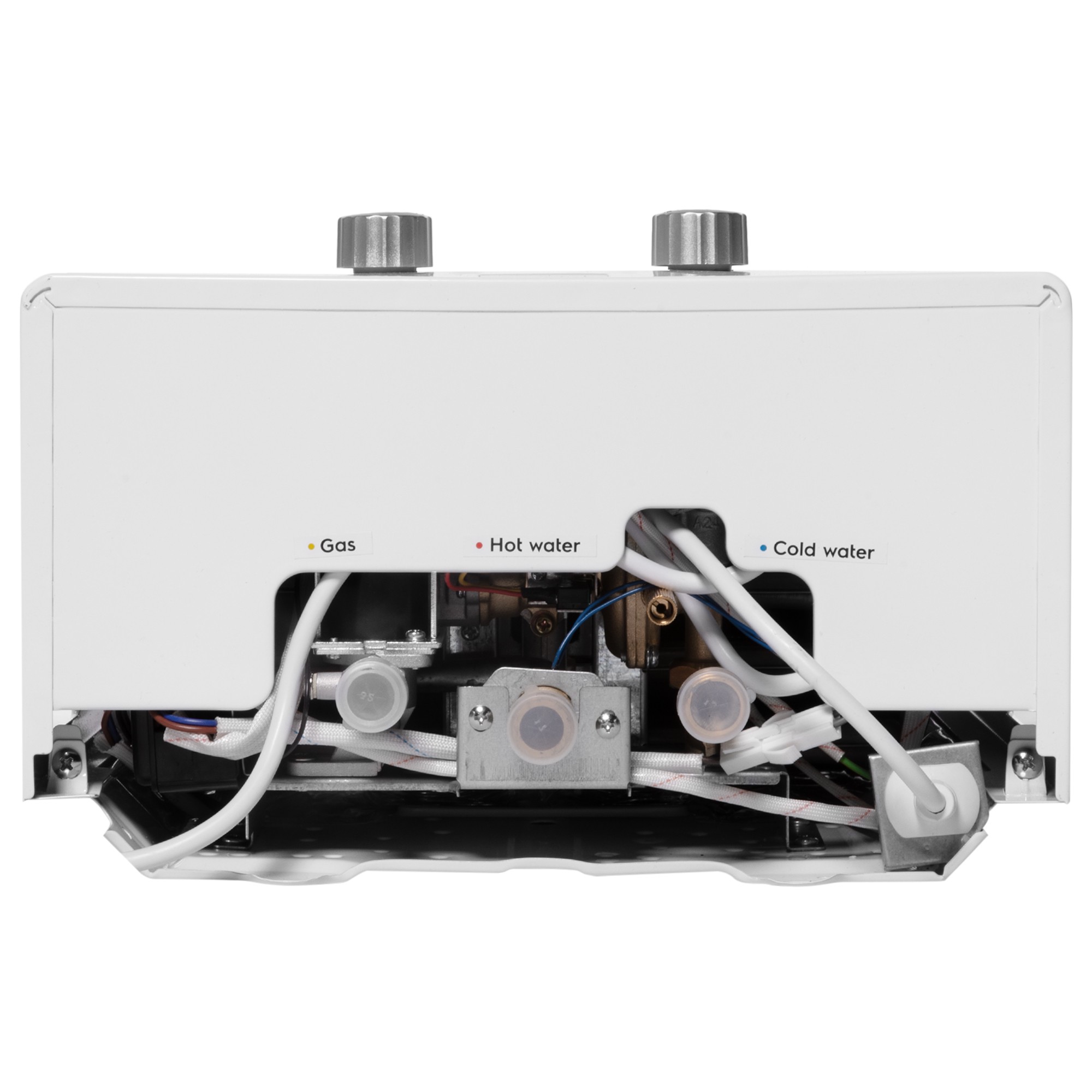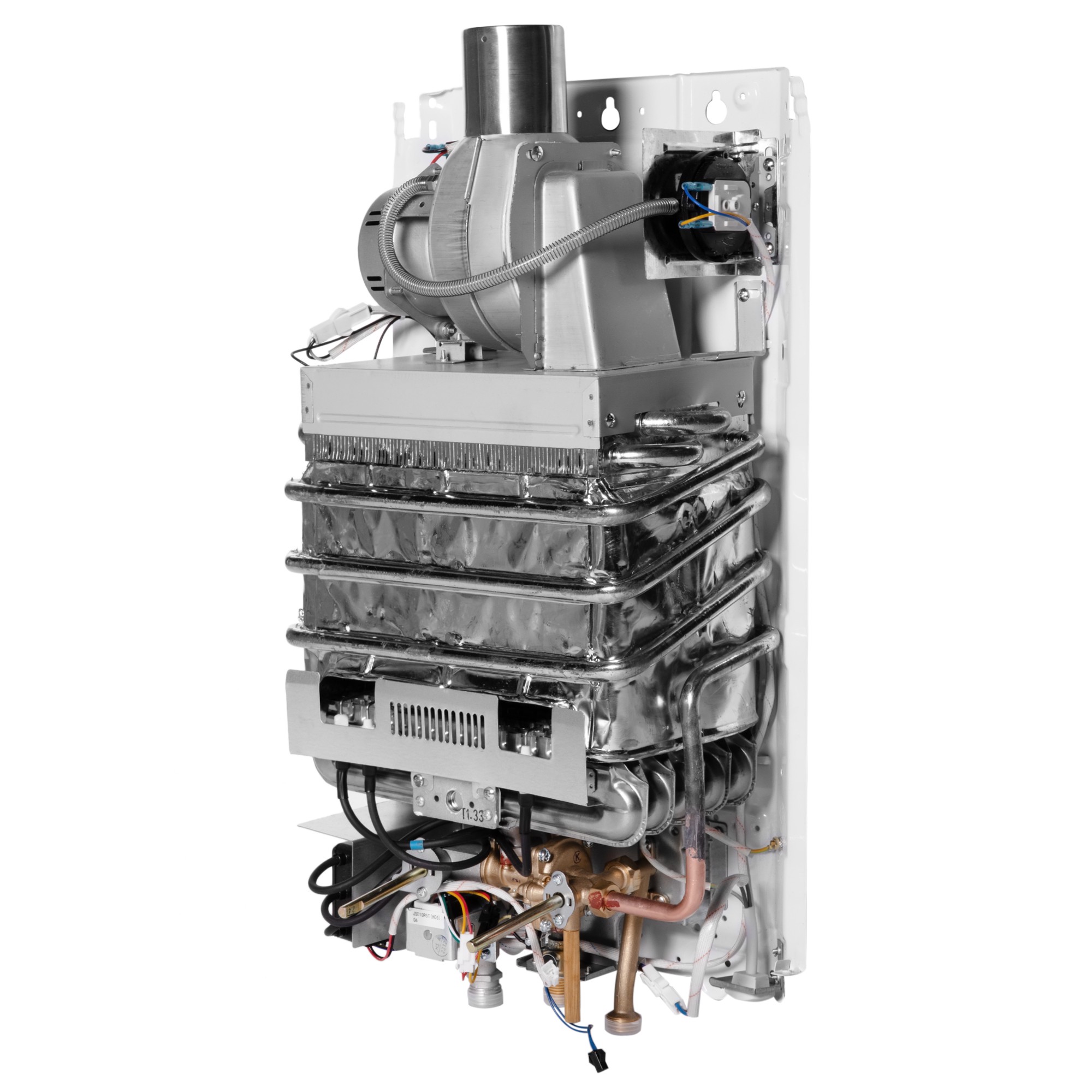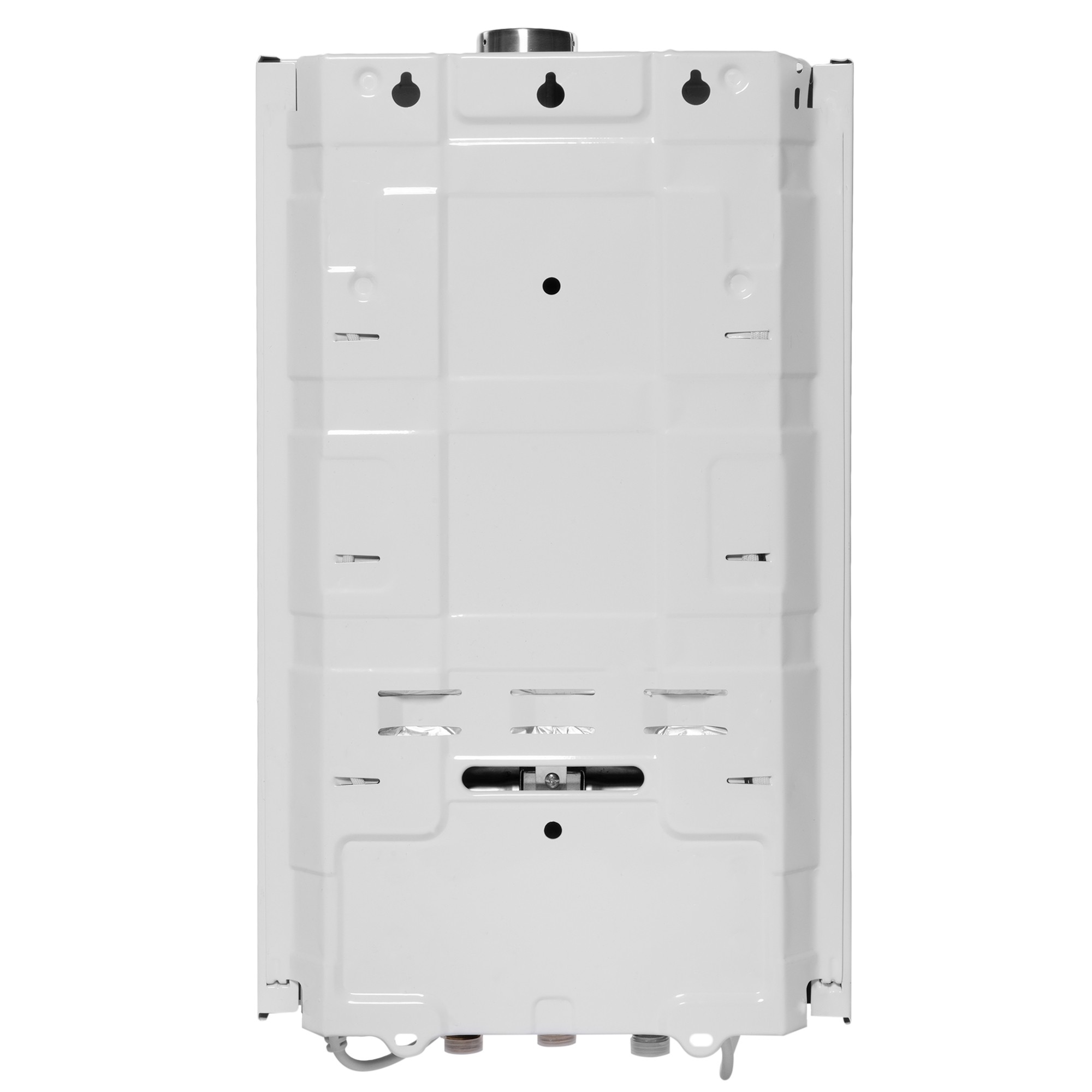 Четыре уровня контроля безопасности: датчик тяги, защитный термостат, гидравлический предохранительный клапан и контроль ионизации пламени – обеспечат надежную и безопасную работу водонагревателя. Для защиты лицевой панели от перегрева и прогорания прибор дополнительно оснащен металлической пластиной.