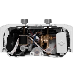 Розжиг горелки водонагревателя происходит автоматически при включении крана горячей воды и мгновенно затухает при выключении крана. Такой способ включения является безопасным, удобным и позволяет существенно сэкономить расход газа.