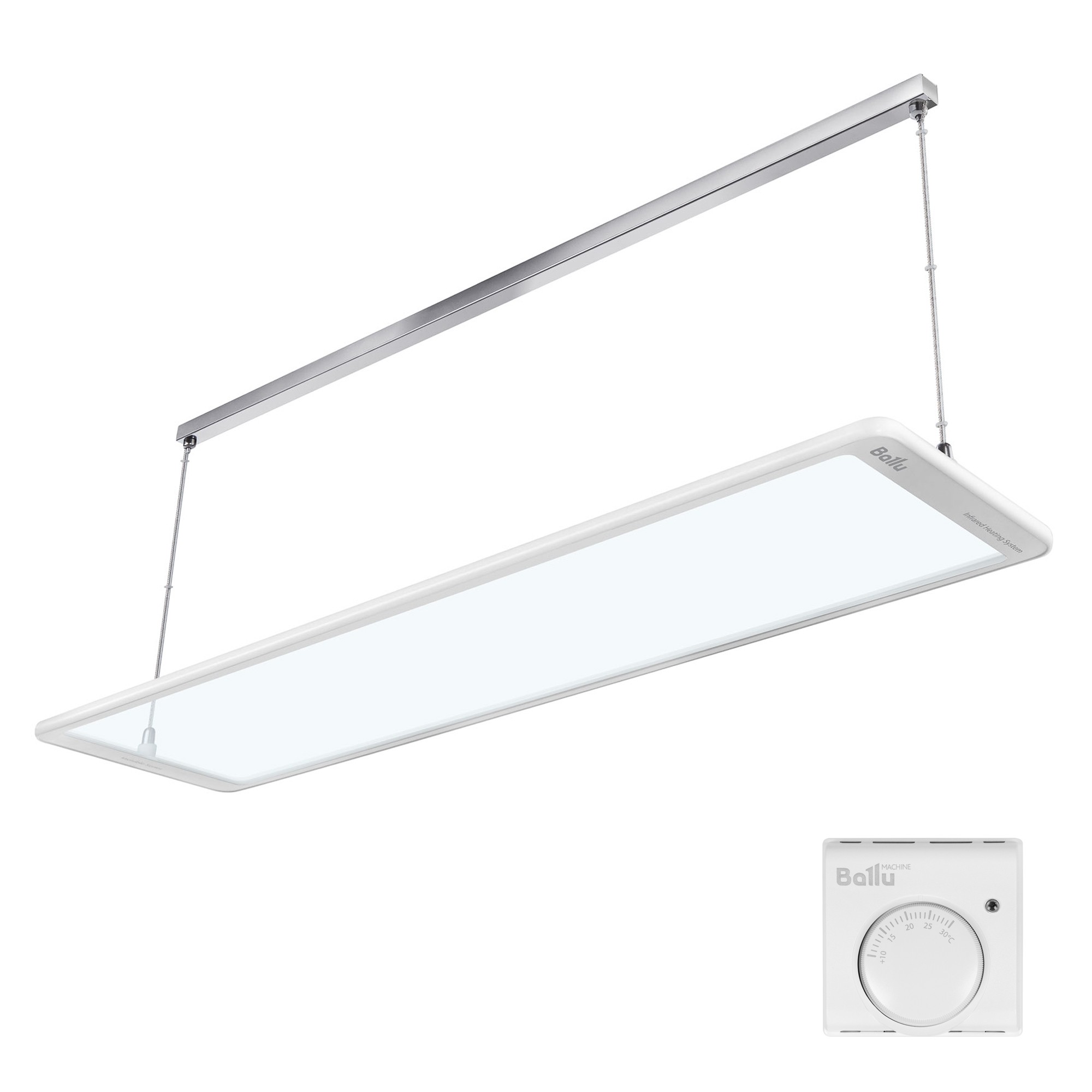 Повышенная степень пылевлагозащиты IP54 допускает применение обогревателей даже во влажных помещениях (ванные комнаты, бани, бассейны). Подвес на тонких незаметных тросах в комплекте.