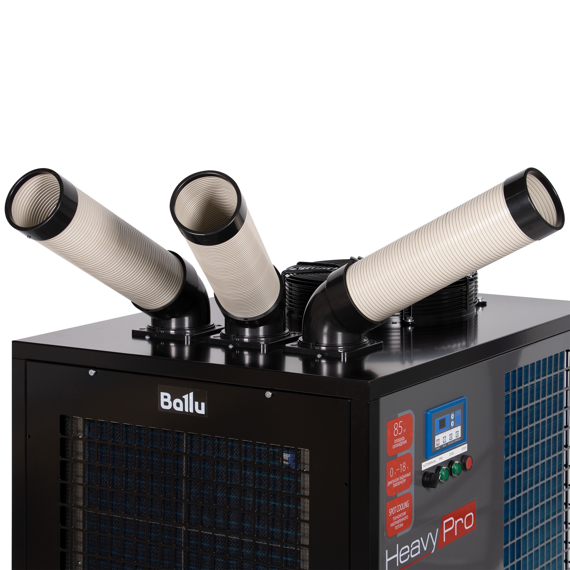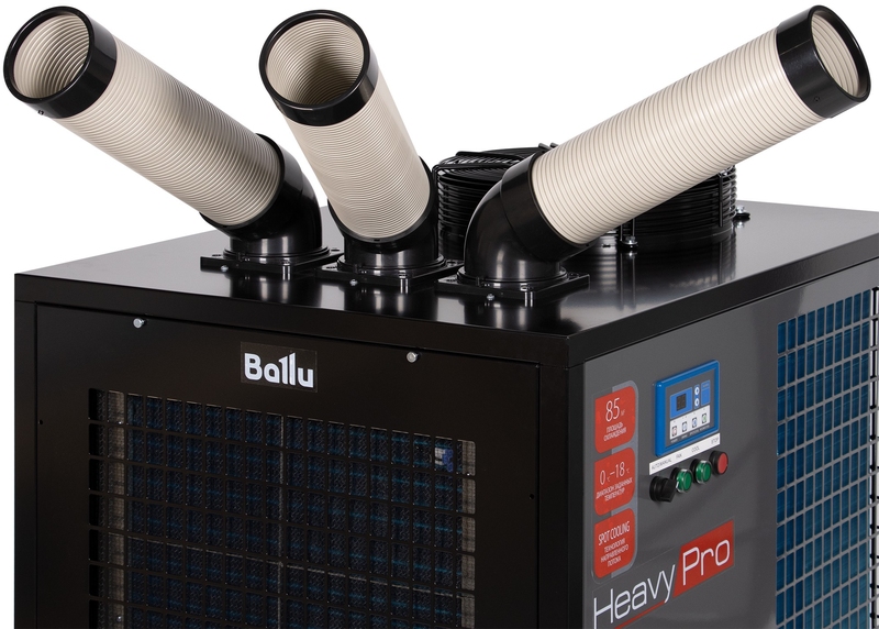 Такие приборы также могут быть использованы для точечного охлаждения оборудования в период пиковых нагрузок при работе в жаркое время. Технология SPOT COOL – гибкие воздуховоды-направляющие вращающиеся на 180 градусов позволяют точечно подавать холодный воздух в необходимое место.