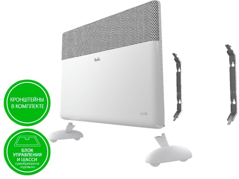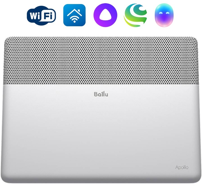 Приборы серии Apollo оснащены современным бесшумным нагревательным элементом HEDGEHOG, который выходит на рабочую температуру на 20% быстрее, имеет сверхкомпактные размеры и увеличенную площадь теплоотдачи. Для конвекторов нового поколения 3.0 Ballu предлагает 3 вида блоков управления на выбор: классический механический, электронный и энергосберегающий digital INVERTER. При использовании инверторного блока, оснащенного полноразмерным цветным дисплеем, емкостными сенсорными кнопками и датчиком открытого окна, достигается экономия электроэнергии до 70%.