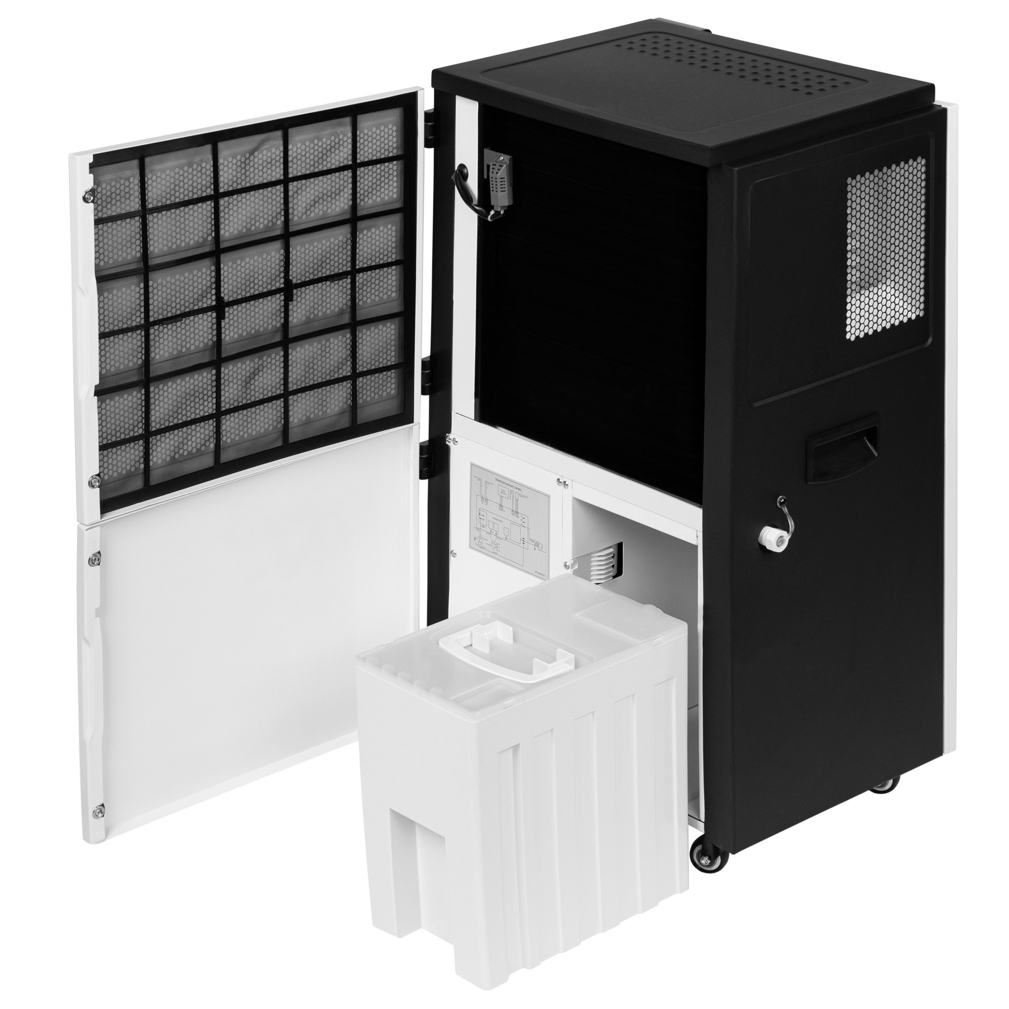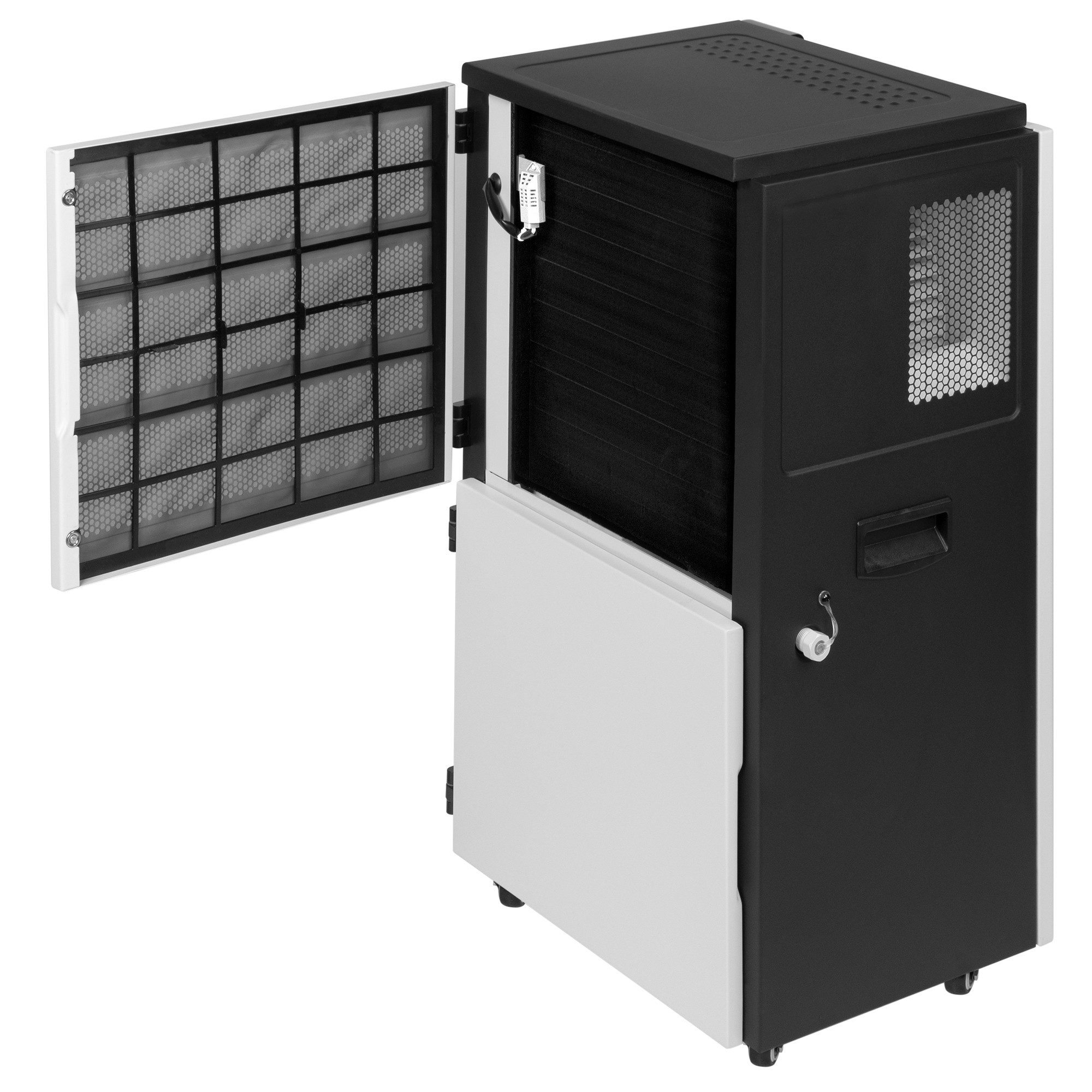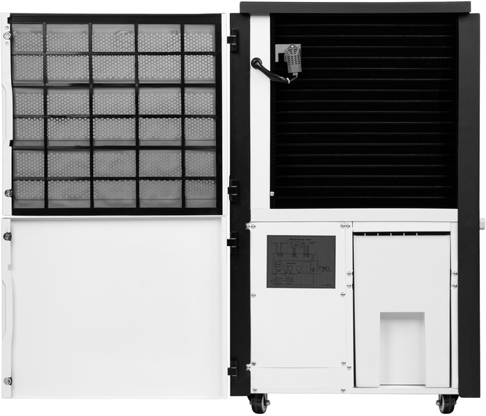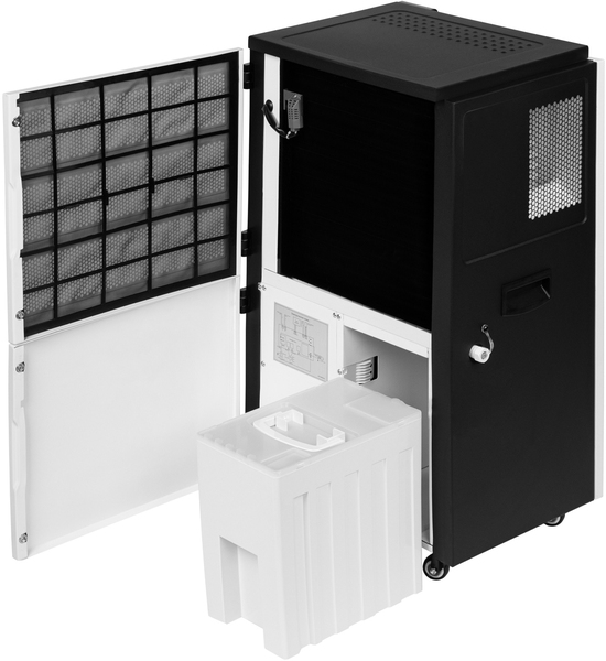 Предусмотренные в конструкции эргономичные ручки, «утопленные» в боковых панелях осушителя, и прочные шасси обеспечивают удобство использования прибора и возможность быстрого перемещения в нужное место.
