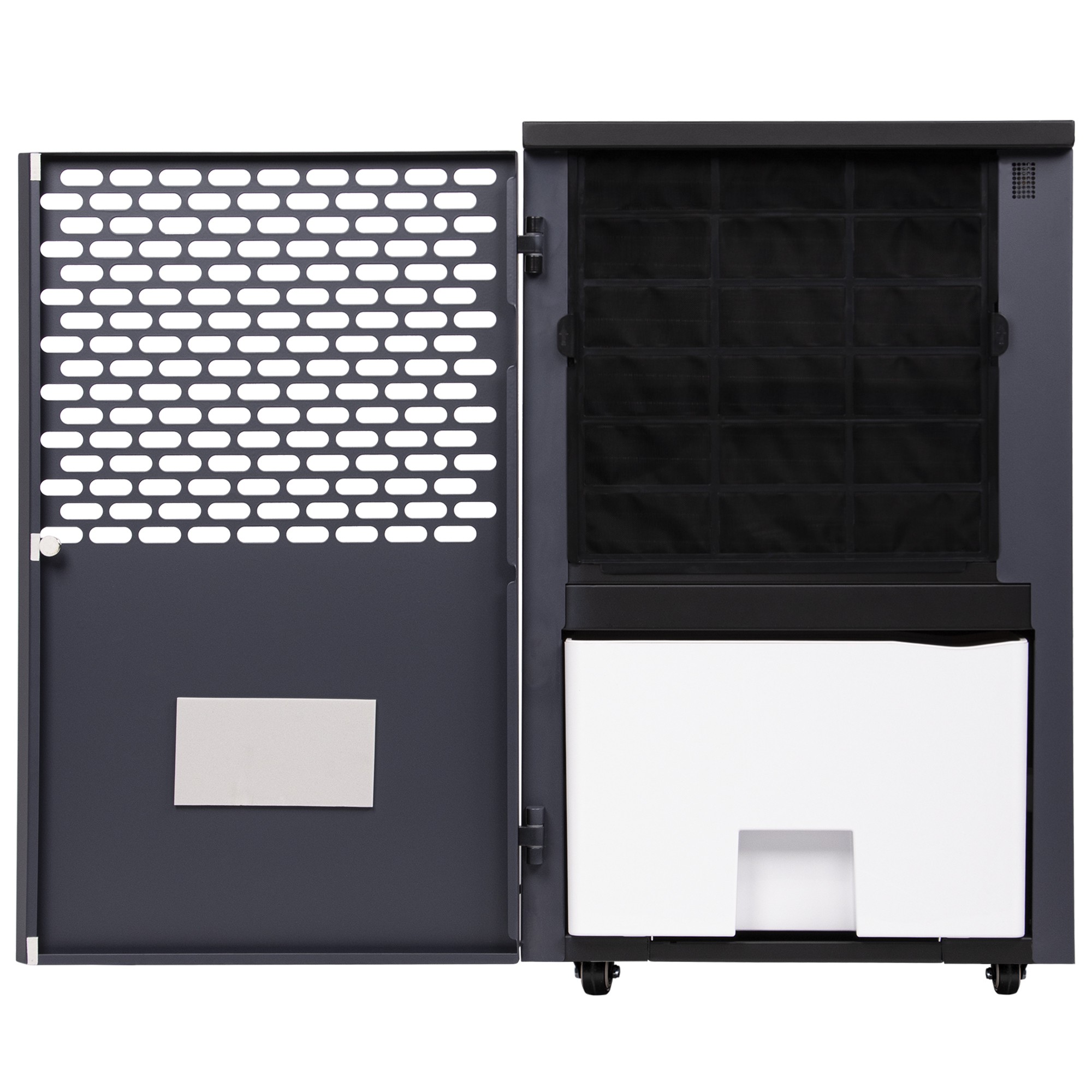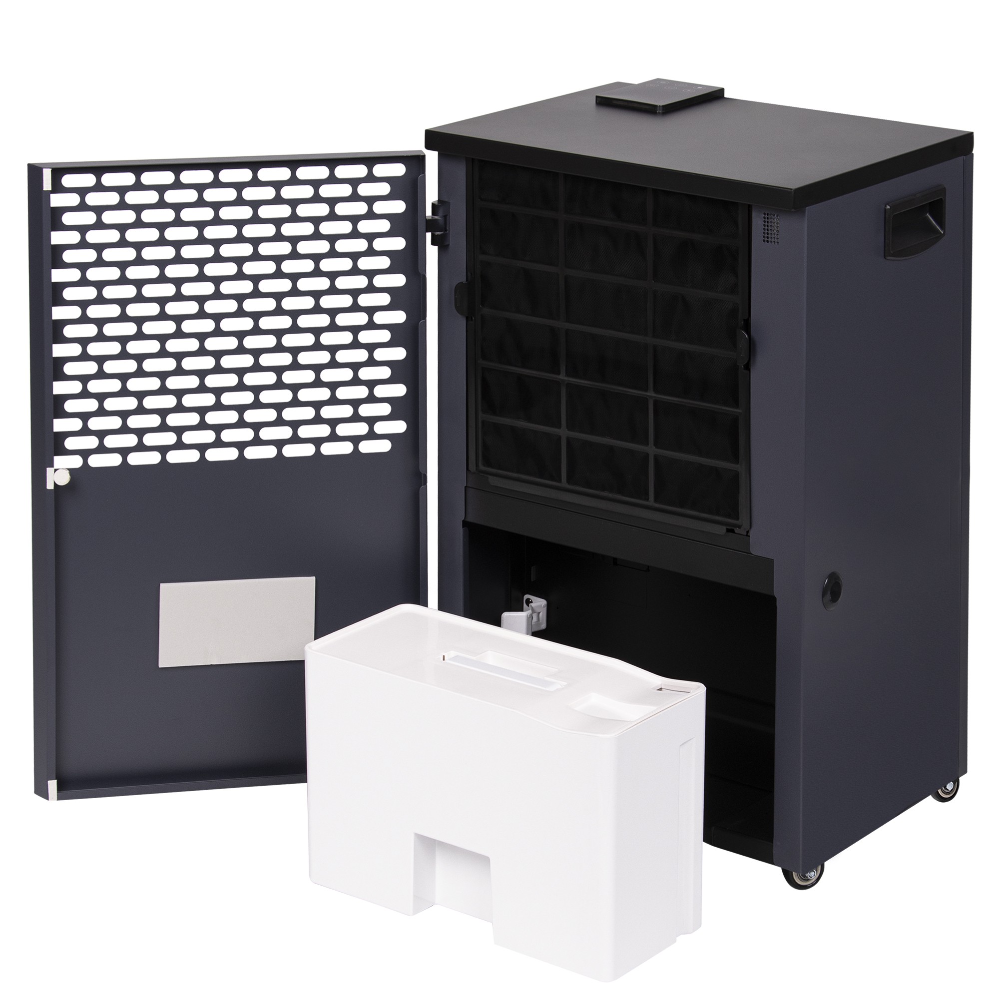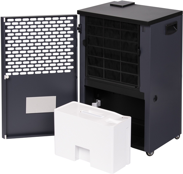 Предусмотренные в конструкции эргономичные ручки, «утопленные» в боковых панелях осушителя, и прочные шасси обеспечивают удобство использования прибора и возможность быстрого перемещения в нужное место.