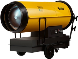 Воздухонагреватель дизельный прямого нагрева Ballu BHDP-120 серии Tundra предназначен для обогрева нежилых помещений и локального прогрева рабочих поверхностей. Тепловая мощность прибора составляет 120кВт. При работе дизельной пушки воздушный поток, проходя через защитную решётку – втягивается в камеру сгорания. Там он смешивается с распылённым форсункой дизельным топливом, которое при помощи мощного насоса под высоким давлением подаётся из топливного бака, образуя воздушно – топливную смесь. При помощи 12kV электродов смесь поджигается и сгорает, а затем - выбрасывается наружу, смешиваясь с продуктами сгорания и с основной массой поступаемого воздуха, тем самым нагревая его. Теплоотражающий экран, расположенный в передней торцевой части корпуса прибора- служит препятствием для вырывающегося открытого пламени и обеспечивает равномерный прогрев помещения либо обогреваемой рабочей поверхности.