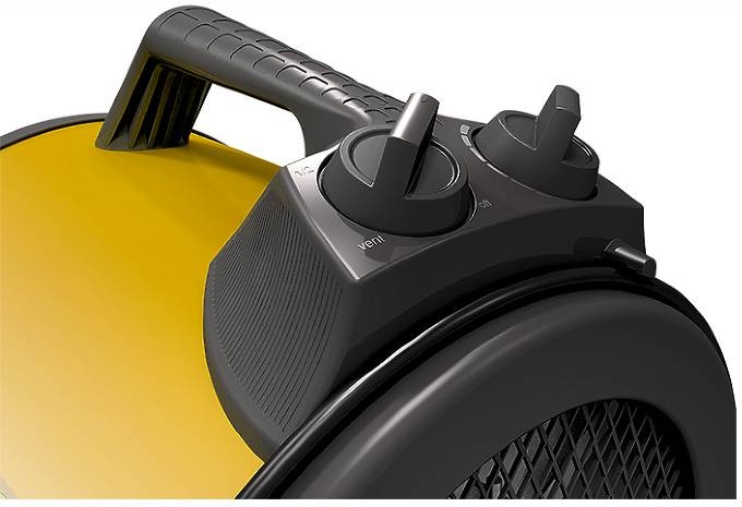 В цилиндрическом корпусе пушки нагревательные элементы особой формы способствуют созданию более эффективного направленного воздушного потока. В пушке предусмотрено два режима мощности и режим вентиляции. Прибор просто подключается к сети с помощью кабеля с вилкой.