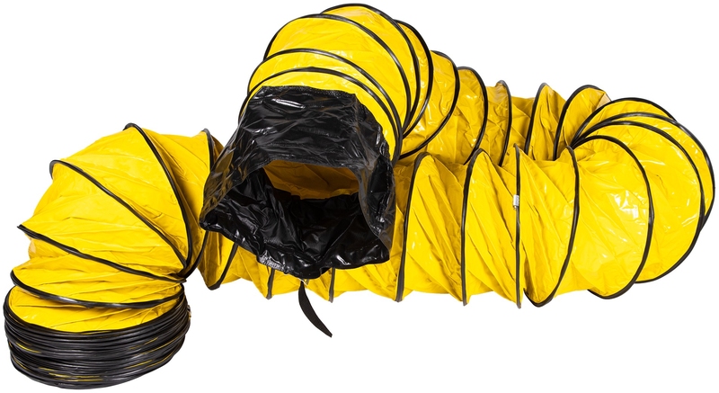 Выполнен из негорючей ПВХ ткани, водостойкий, армирован стальной спиралью.