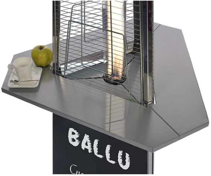Столик разработан инженерами Ballu с учётом всех особенностей использования уличных обогревателей на летних верандах ресторанов и в уличных кафе.