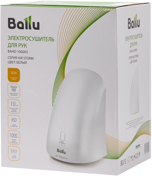 Модель Ballu BAHD-1000AS оснащена передовой технологией Air Jet, которая обеспечивает максимально эффективное сушение всего за 10 секунд.