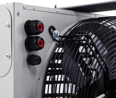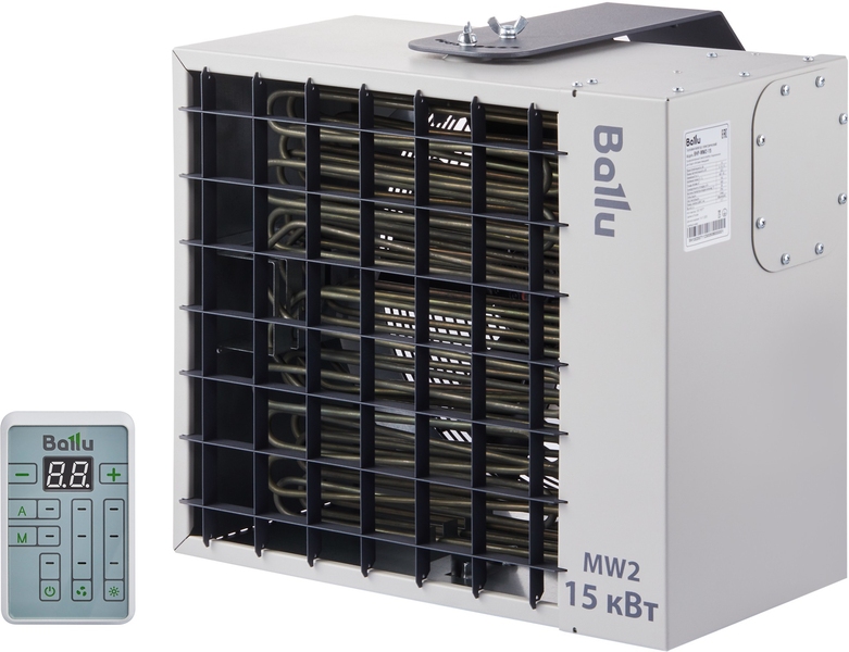 Специализированная серия подвесных электрических промышленных тепловентиляторов MW2 разработана для стационарного отопления помещений без подключения к теплосети: складских, коммерческих и промышленных помещений. Повышенная пылевлагозащита IP54 позволяет использовать приборы во влажных помещениях и на открытых площадках без навеса. Благодаря поворотному кронштейну, входящему в комплект поставки, угол обдува тепловентилятора можно регулировать в двух плоскостях. Новая конструкция передней решетки более равномерно распределяет выходящий поток воздуха. Тепловентиляторы комплектуются цифровым пультом управления BRC-D с возможностью подключения и управления по ModBUS до 64 приборов. Кабель управления (3 метра) в комплекте с пультом.