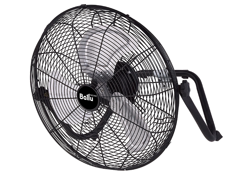 С помощью кронштейна, идущего в комплекте, вентилятор можно подвесить на стену, а угол наклона отрегулировать с помощью удобных барашковых винтов.