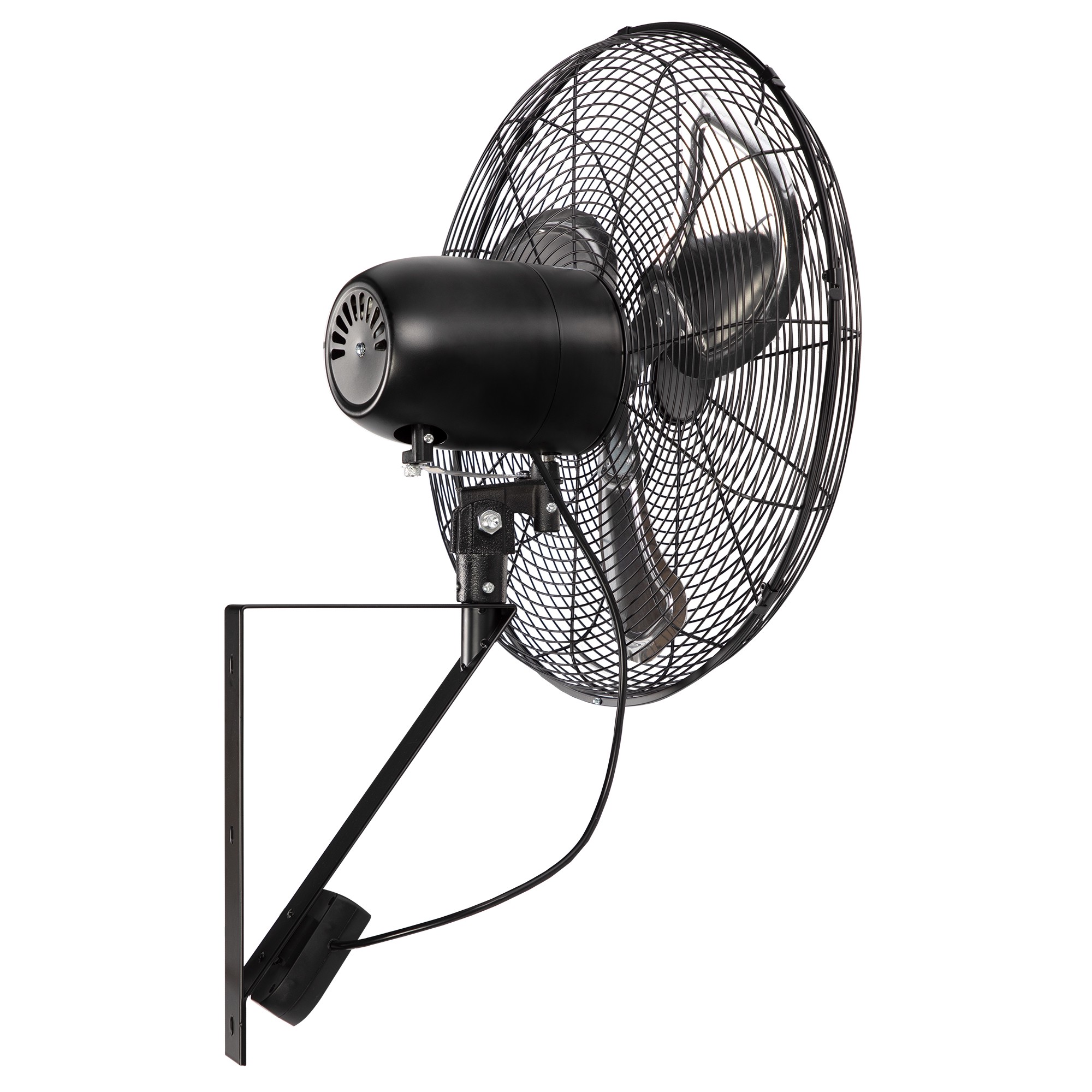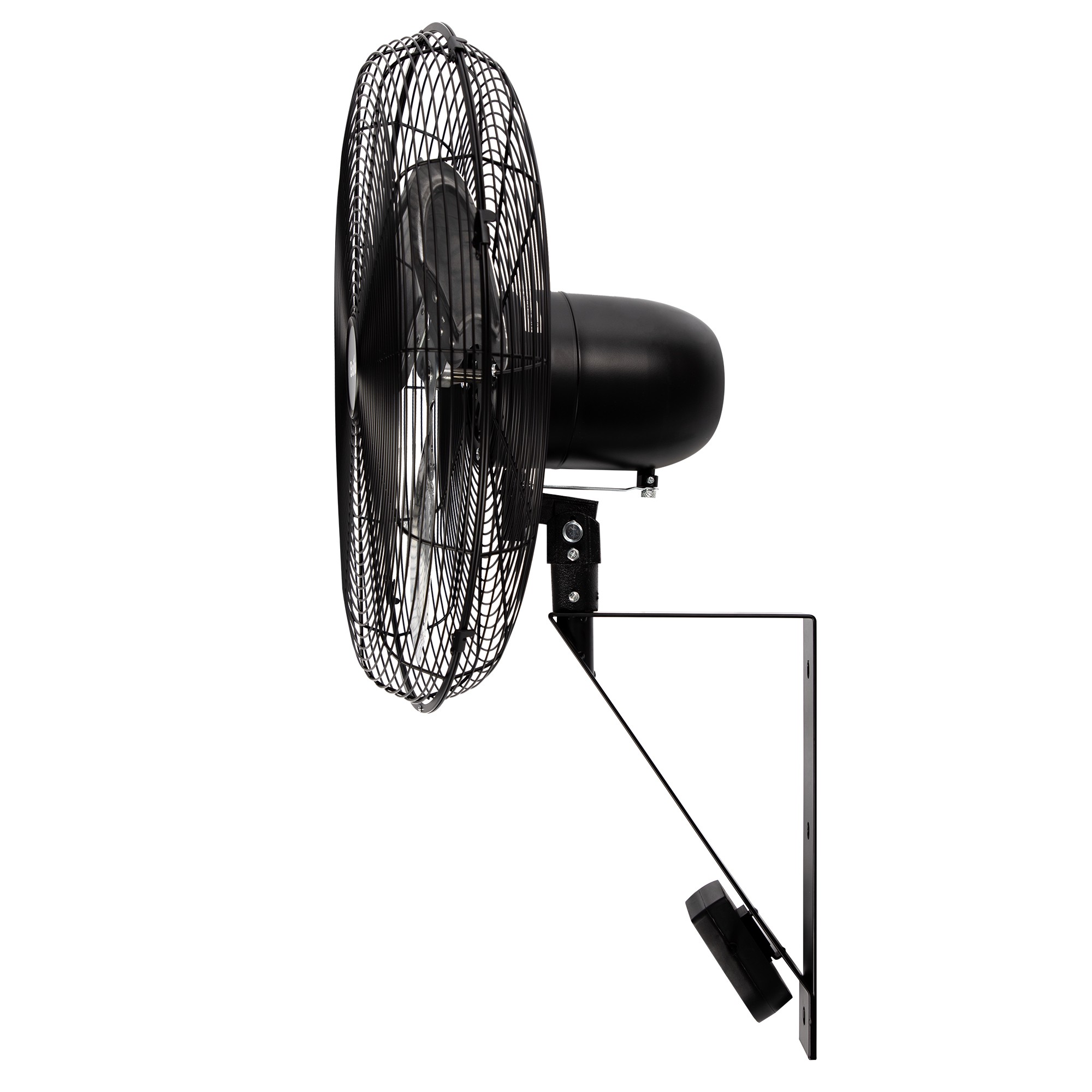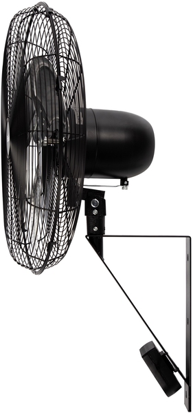 С помощью кронштейна, идущего в комплекте, вентилятор можно подвесить на стену, а угол наклона отрегулировать с помощью удобных барашковых винтов.