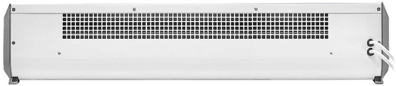 Передняя панель без перфорации блокирует распространение шума от вентиляционных колес направляя его в потолок, а не в проходящих людей, что делает завесу значительно тише аналогов в классическом корпусе.